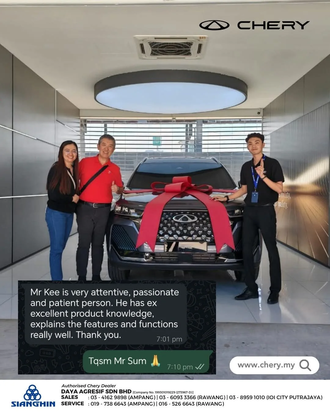 Specialised in Chery & Jaecoo, with access to many other brands. Fluent in English, 中文,Bahasa Malaysia.